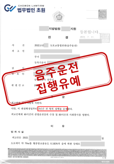 [집행유예] 0.182% 만취상태로 4번째 음주운전, 구속을 면한 성공사례