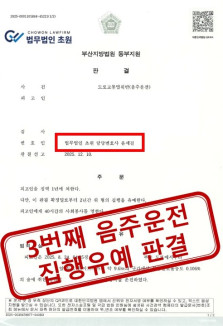 [집행유예] 3번째 음주운전 의뢰인, 실형 위기에서 집행유예 판결