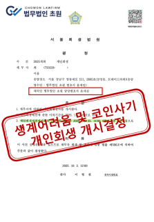[개시결정] 코인 리딩방 사기피해 및 생계 어려움으로 인한 개인회생 개시결정