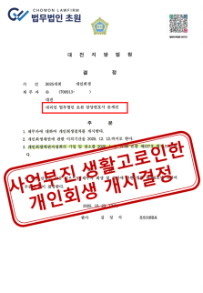 [개시결정] 배우자 사업 부진으로 인해 재정적 어려움에 처한 40대 의뢰인, 개인회생 개시결정 확보