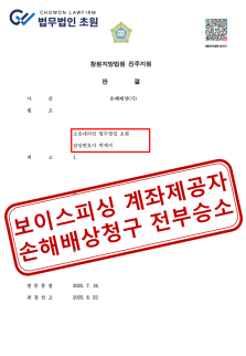 [전부승소] 보이스피싱 사기단체 계좌제공자에 대한 손해배상청구 전부승소 판결