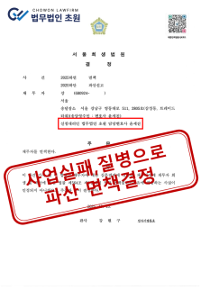 [면책결정] 사업실패와 질병으로 인한 생계곤란 50대, 파산면책 결정으로 3천만원 전액 탕감