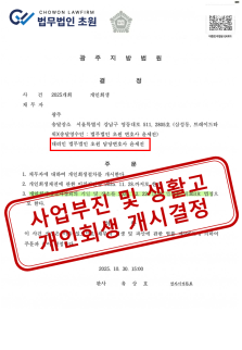 [개시결정] 가계부채와 사업실패로 인한 생계곤란 30대 의뢰인 개인회생 개시결정
