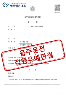 [집행유예] 과거 음주운전 경력 있는 의뢰인, 실형 피하고 집행유예 판결